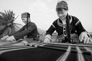 | 黎族妇女在织锦。 本报记者 张杰 摄