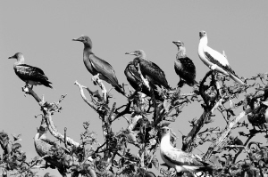 这里是鸟的天堂。西沙群岛上栖息着鸟类40多种,常见的有鲣鸟、乌燕鸥、黑枕燕鸥、大凤头燕鸥和暗缘乡眼等。在整个树林的上层及其上空,海鸟成千上万终日盘旋飞翔,自成奇观,被称为“鸟的天堂”。其中,有一种鲣鸟会在大海中给渔船导航,白天渔民根据鲣鸟集结和寻食方向,驾船扬帆前去撒网捕鱼,傍晚跟随它们飞回的路线,把渔船从茫茫大海驶往附近的海岛停泊,渔民们称鲣鸟为“导航鸟”。