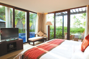 海风穿过敞开式的酒店大堂,客人悠闲地躺在房间宽大的沙发上看书,抬头可以眺望远处的大海;或躺在SPA馆享受全身心放松的水疗,在大自然的天籁之音中静心冥想;或坐在宽敞的大堂吧,任英国女钢琴手悠扬的琴声拂动思绪......