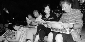 | 一月六日,来三亚过冬的游客在阅读海南日报号外。