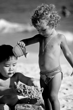 | 在三亚海滩游玩的小游客。 梅涛 摄 |