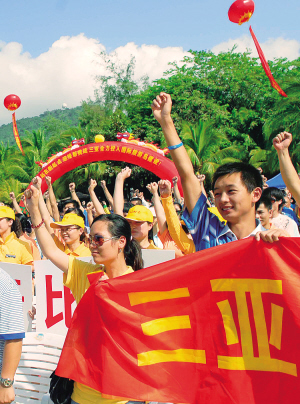 | ↑1月6日,三亚旅游界人士振臂欢呼,誓为海南国际旅游岛建设贡献力量。