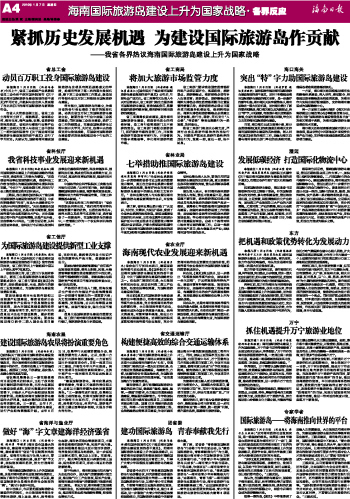| 海南日报 海南国际旅游岛建设上升为国家战略·界反应 004 2010-01-071 2010年01月07日 星期四 |