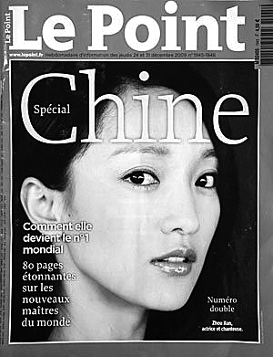 走进法国著名综合类周刊《观点》杂志社大楼,迎面就能看到电梯旁半米来高的年终号中国特刊封面海报。红色底框中,影星周迅明亮的眼睛和唇畔隐约的微笑为略显昏暗的大厅增添了几抹亮色。