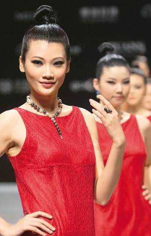 | 在中国珍珠2010新品发布会上,新丝路模特机构模特展示国内品牌珍珠新品。
