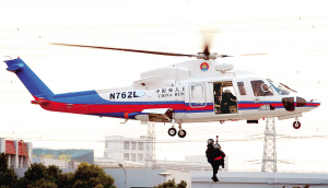 1月7日,救助直升机正在进行救助演练。东海第一救助飞行队直升机从两架增加至四架,为保障2010年上海世博会、维护海上安全再添“新翼”。新华社记者 陈飞 摄
