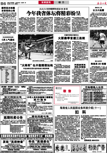 海南日报 体育新闻 014 2010-01-081 2010年01月08日 星期五