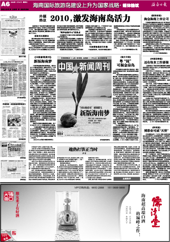 海南日报 海南国际旅游岛建设上升为国家战略·媒体热议 006 2010-01-081 2010年01月08日 星期五