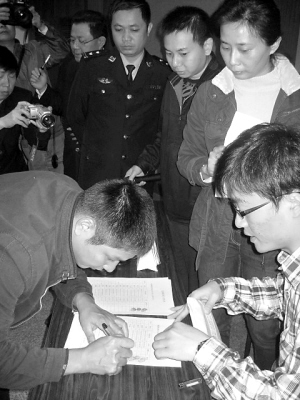 海南银建实业投资有限公司司机签名,准备领取该公司违规收取的“手续费”。 本报记者 徐珊珊 摄