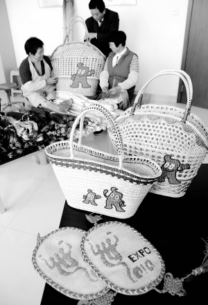 1月7日,上海市嘉定区徐行镇的民间草编工艺师在编织融入世博元素的草编工艺品。“徐行草编”已列入国家级非物质文化遗产名录。 新华社发(张金桥 摄)