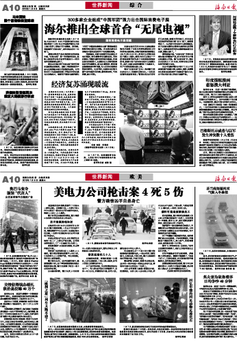 海南日报 世界新闻 010 2010-01-091 2010年01月09日 星期六