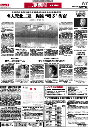 名人置业三亚 掏钱“唱多”海南