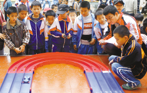 1月9日,海口市第三十一小学操场,“南婷”杯海口市美兰区青少年四驱车模校园邀请赛正在紧张进行,来自辖区内十所小学200多名学生参加比赛。 本次活动由共青团美兰区委、美兰区教育局等部门联合举办。 本报记者 李英挺 通讯员 林海 摄