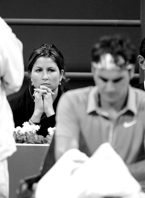 | 费德勒形势不妙,注视着比赛的妻子米尔卡也一脸担忧。 新华社发 |