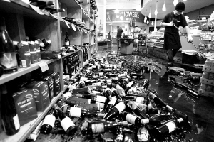| 一月九日,在美国加利福尼亚州的一家商店内,店员整理被震落到地上的货物。 新华社/美联 |