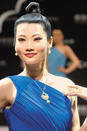 | 中国珍珠2010年新品发布会上,模特展示各种珍珠饰品。 |