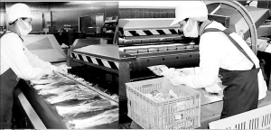 | 工人在流水线上操作真空包装出口产品。