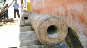 | ← 一九八O年代在宁远河入海口出土的两门铁炮,陈列在三亚市博物馆内。 郭景水 摄 |