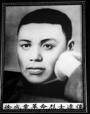 | 海口市演丰镇徐成章烈士故居里的徐成章烈士像。