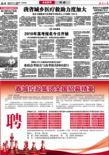 | 海南日报 本省新闻时 政 004 2010-01-111 2010年01月11日 星期一 |