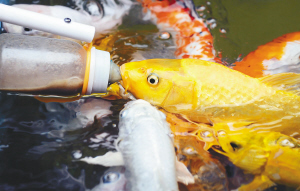 1月11日,在南宁市人民公园,“吃奶鱼”在进食。 在广西南宁市人民公园,有一批“吃奶鱼”深受游客喜爱。“吃奶鱼”是日本的金鲤鱼和亚马逊鱼杂交的后代,它们在大约一岁时,就会被饲养员训练用奶瓶进食,到2岁左右就会自己吮吸奶嘴喝奶。新华社发