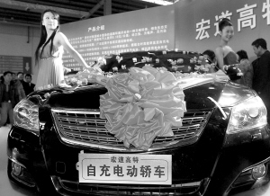 ←1月8日,一款电、磁双动力系统的新式电动汽车在福州展览城亮相。 该车由中德合资生产,默认使用电池系统,可保证汽车行驶400公里左右。 新华社发