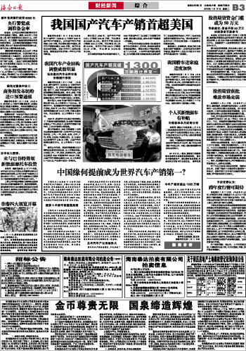 海南日报 财经新闻综 合 011 2010-01-121 2010年01月12日 星期二