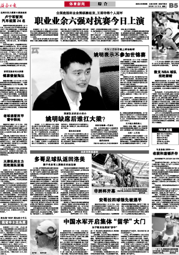 海南日报 体育新闻综 合 013 2010-01-121 2010年01月12日 星期二