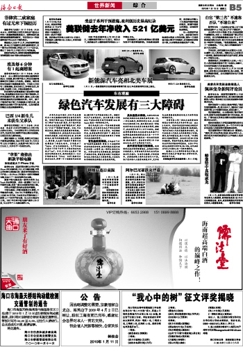 海南日报 世界新闻综 合 013 2010-01-131 2010年01月13日 星期三