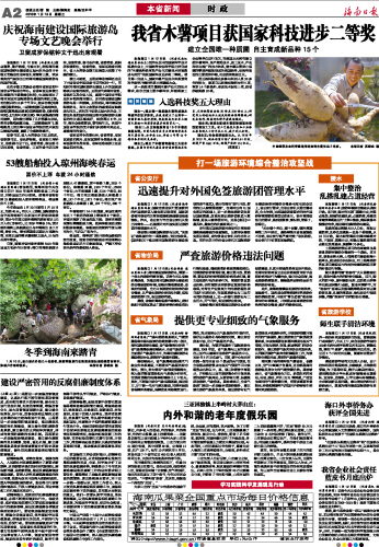 海南日报 本省新闻时 政 002 2010-01-131 2010年01月13日 星期三