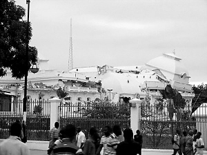 1月12日,在海地首都太子港,海地总统府在地震中受损。 新华社发