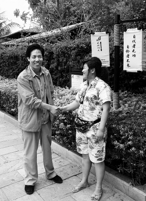 ———大小洞天景区的温馨一幕 本报记者 程范淦 今天中午12时32分,一个令人倍感温馨的时刻。三亚大小洞天景区的一间办公室里,两双手紧紧地握在了一起。吉林省长白山市六道江镇中心小学女教师邹宇对景区保洁员文玉斌说:“谢谢!终于见面了……” 2007年1月19日,邹宇跟旅游团到大小洞天游玩,吃完午饭上车回机场,导游找上她,问她是否把包搞丢了?邹宇这时发现自己的包不见了。“当时一下就懵了。返程机票、身份证、手机、金项链、现金全在包里。”邹宇描述当时情景:“还好,导游告诉我,大小洞天景区通知我去领包。”邹宇急忙赶回大小洞天。打开包一看,什么东西都没少。 “谁捡到的?我要感谢人家”,这是邹宇当时的意念。但是,由于要赶飞机,邹宇留下了一丝遗憾。回到吉林后,邹宇联系景区得知,拾金不昧的是该景区园容部一位名叫文玉斌的员工,遂打通了文玉斌的电话表示感谢。但何时能见上文玉斌一面,当面道谢,仍成了邹宇心里的一份情结。 今天,邹宇终于如愿,再次来海南旅游的她,终于见到了文玉斌。 “文大哥,终于见到你了,很亲切。”“不足挂齿,我一切挺好。”邹宇和文玉斌拉起了家常;“人参、蘑菇、木耳……”邹宇从包里拿出从家乡带过来的特产,塞给文玉斌,文玉斌一阵推辞……欢声笑语声充满办公室。 在这间办公室里,记者注意到了一个贴着“失物招领”字条的玻璃柜,里面有10多个数码照相机、游戏机、MP3、MP4等物品。景区负责人拿出的册子显示:从2005年到2009年,大小洞天的员工共捡到游客物品260多件(次),价值40多万元。 (本报三亚1月13日电) |