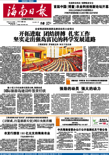 海南日报 头版 001 2010-01-161 2010年01月16日 星期六