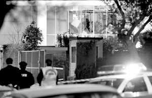 希腊新闻部大楼外 发生爆炸 1月15日,警察守卫在希腊首都雅典的希腊新闻部大楼外。 当天,这里发生爆炸,所幸没有人员伤亡。爆炸发生前,曾有两家私人电视台接到匿名警告电话称,将有爆炸发生。新华社/法新