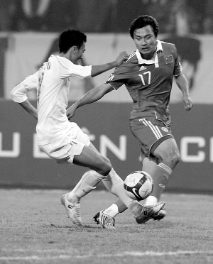 17日,在河内举行的亚洲杯预选赛小组赛中,中国队以2:1战胜越南队。图为郜林(右)在比赛中拼抢。 新华社发