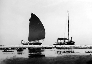 | 解放前海南渔民乘这样的木帆船出海作业。