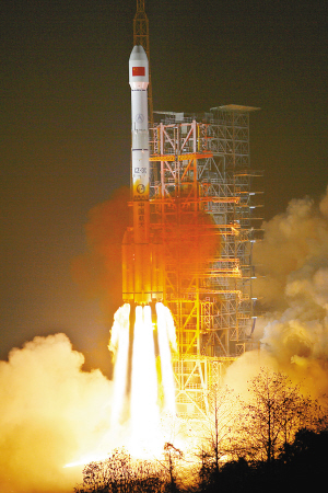 | 1月17日0时12分,中国在西昌卫星发射中心用“长征三号”运载火箭成功发射第三颗北斗导航卫星。 新华社发 |