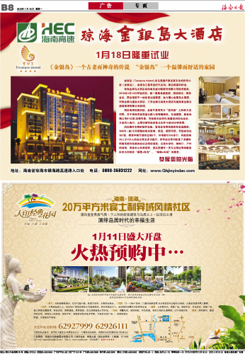 | 海南日报 广 告 专 页 016 2010-01-181 2010年01月18日 星期一 |