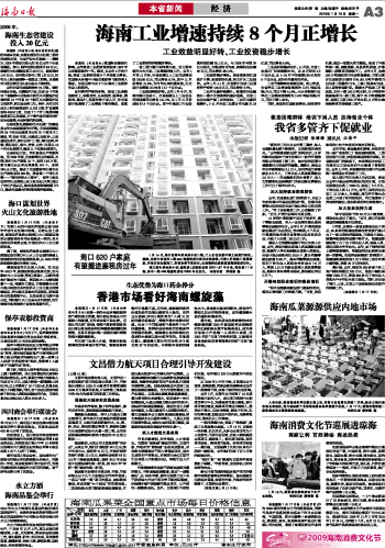 | 海南日报 本省新闻 经 济 003 2010-01-181 2010年01月18日 星期一 |