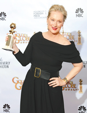 | 梅里尔·斯特里普展示奖杯 新华社发 |