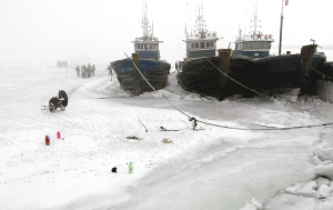 1月18日,在辽宁省锦州市辽西中心渔港,几艘渔船被牢牢地冰冻在海里。 受强冷空气和寒潮天气长时间持续影响,环渤海遭遇30年来最严重海冰灾害,对沿海各地的海上交通、水产养殖、石油生产等涉海生产和群众生活带来了一定的影响和损失。 新华社发