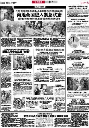 海南日报 世界新闻 012 2010-01-191 2010年01月19日 星期二