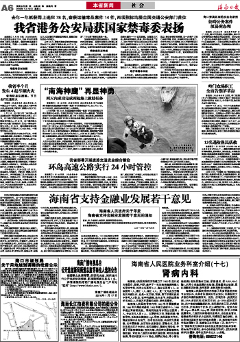 海南日报 本省新闻 006 2010-01-191 2010年01月19日 星期二