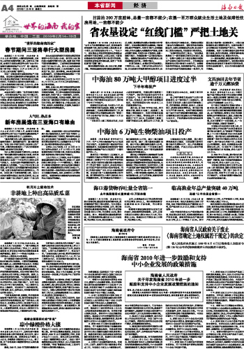 海南日报 本省新闻 004 2010-01-201 2010年01月20日 星期三