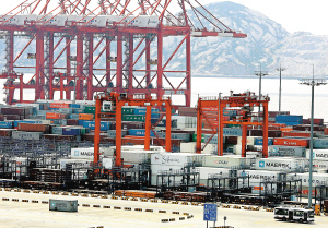 上海市政府1月19日发布的信息显示,2009年,上海港货物吞吐量达到5.9亿吨,集装箱吞吐量达到2500万标准箱,分别位居世界第一、第二位。 新华社记者 陈飞 摄