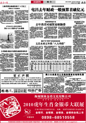 海南日报 本省新闻 005 2010-01-211 2010年01月21日 星期四