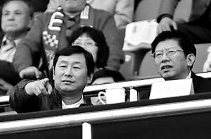 | 南勇(左)与杨一民观看比赛的资料照片。 小新发 |