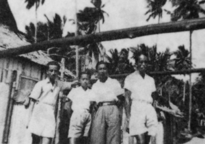 | 南洋少年邢浪平(左二),后来也踏上了回归家乡的路途,这是他1947年在新加坡。