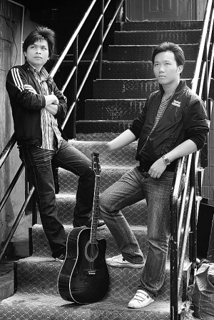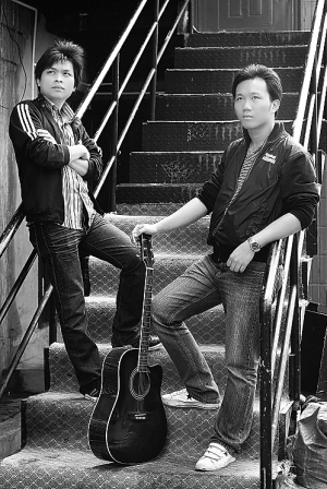 | “音乐兄弟”金安仔(上)和流星阿文。
