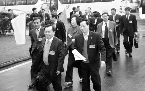 | ↑ 1月24日上午,在省人大会堂,中国人民政治协商会议海南省第五届委员会第三次会议隆重开幕。委员们冒雨参会。 本报记者 王军 摄